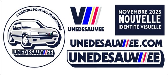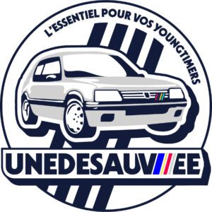 - L’Évocation : le texte en minuscules « unedesauvée » suit la courbure du cercle. Ce nom suggère un projet dédié à la sauvegarde, à la restauration ou à la préservation de voitures anciennes, probablement des modèles Youngtimers populaires qui risquent de disparaître.