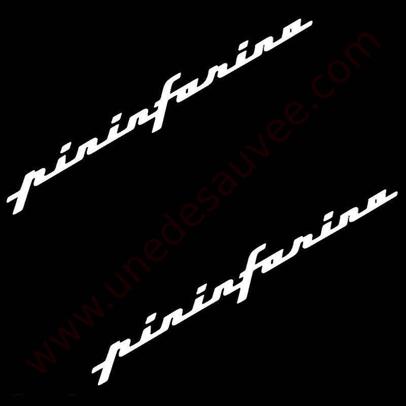 KIT DE 2 AUTOCOLLANTS – STICKERS » PININFARINA » DE COULEUR BLANC POUR ENJOLIVEUR D’AILE ARRIÈRE – CUSTODE DE PEUGEOT 205 CJ CTI ROLLAND GARROS