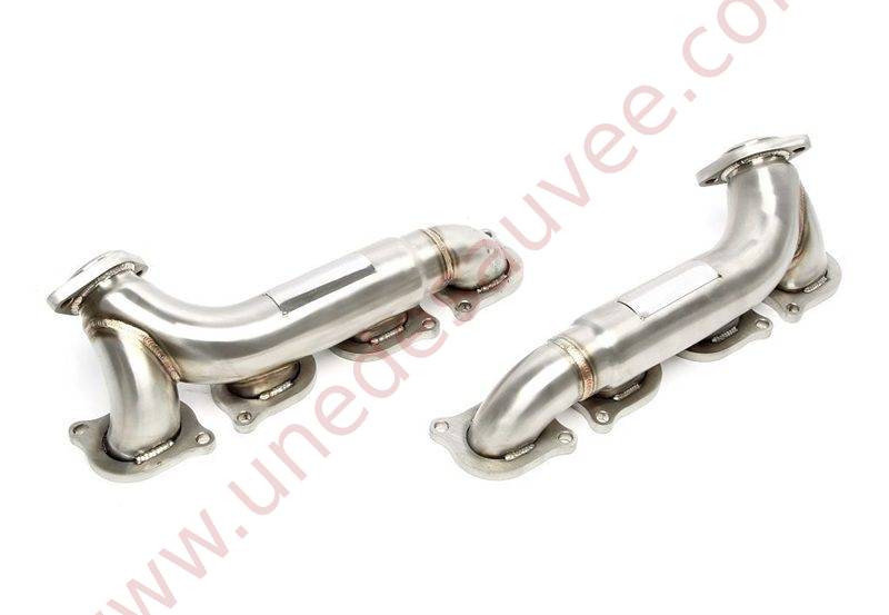 - Collecteur d’échappement en acier inoxydable (gauche + droite).