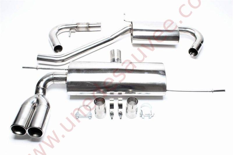 Ligne d’échappement sport inox 2x76 mm ronde bordée EVOG5AE276 pour Audi A3 8P Hors Sportback, VW Golf V 1K et Golf Plus 1KP